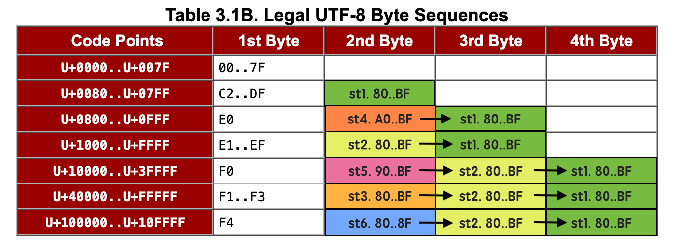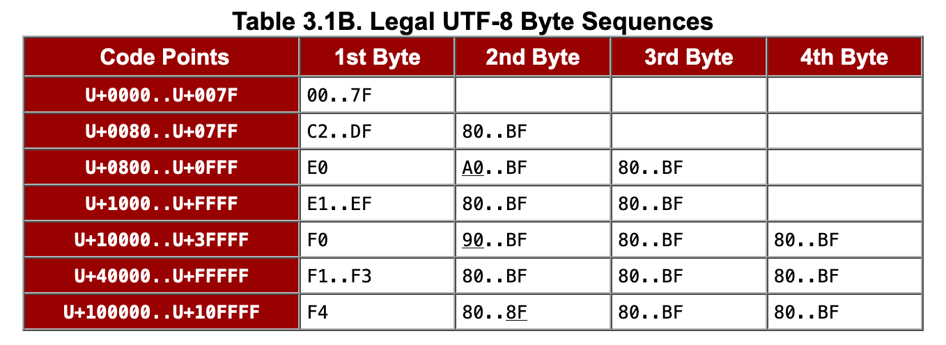 (16 进制格式、前后均闭合区间)。 类似的 “空洞” 不止这一处,unicode.org 上有一个表格整理了所有合法的编码情况: